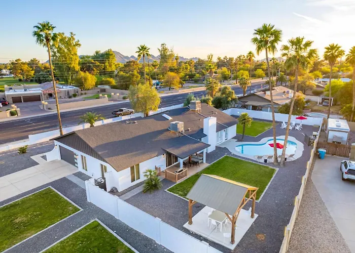 Esta pousada está situado no bairro Paradise Valley de Phoenix, a 4 km de Main Street Arts District. Cosanti fica a 15 minutos de distância do carro e o aeroporto Internacional de Phoenix Sky Harbor está a 25 km desta propriedade. Situada a 7 km de Dream City Church, a The Agave Family Oasis-Modern 5Br-Pool-Bar Vila é popular entre os fiéis e os turistas.
